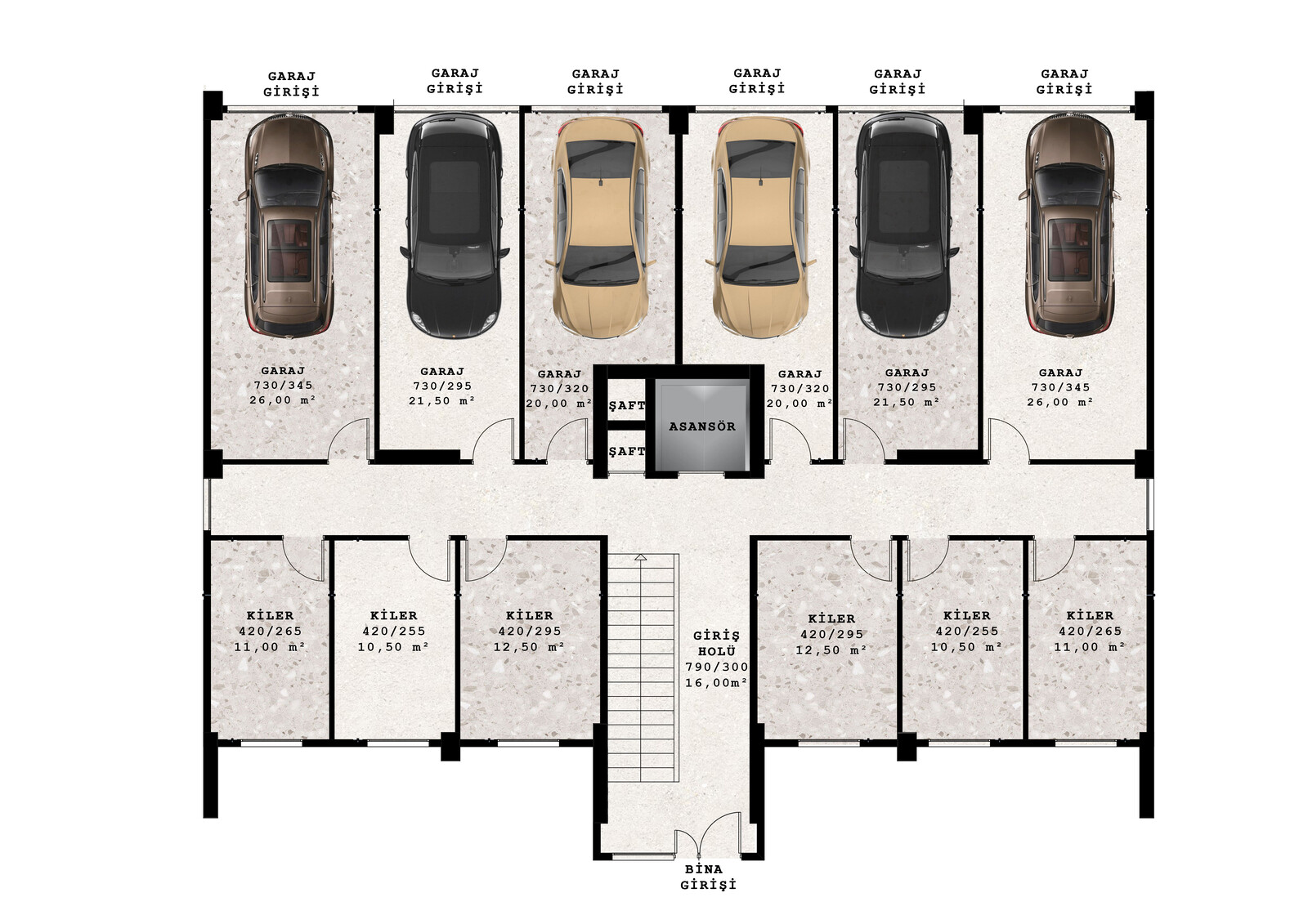 - Site içinde bağımsız bölümlere ait kapalı otopark