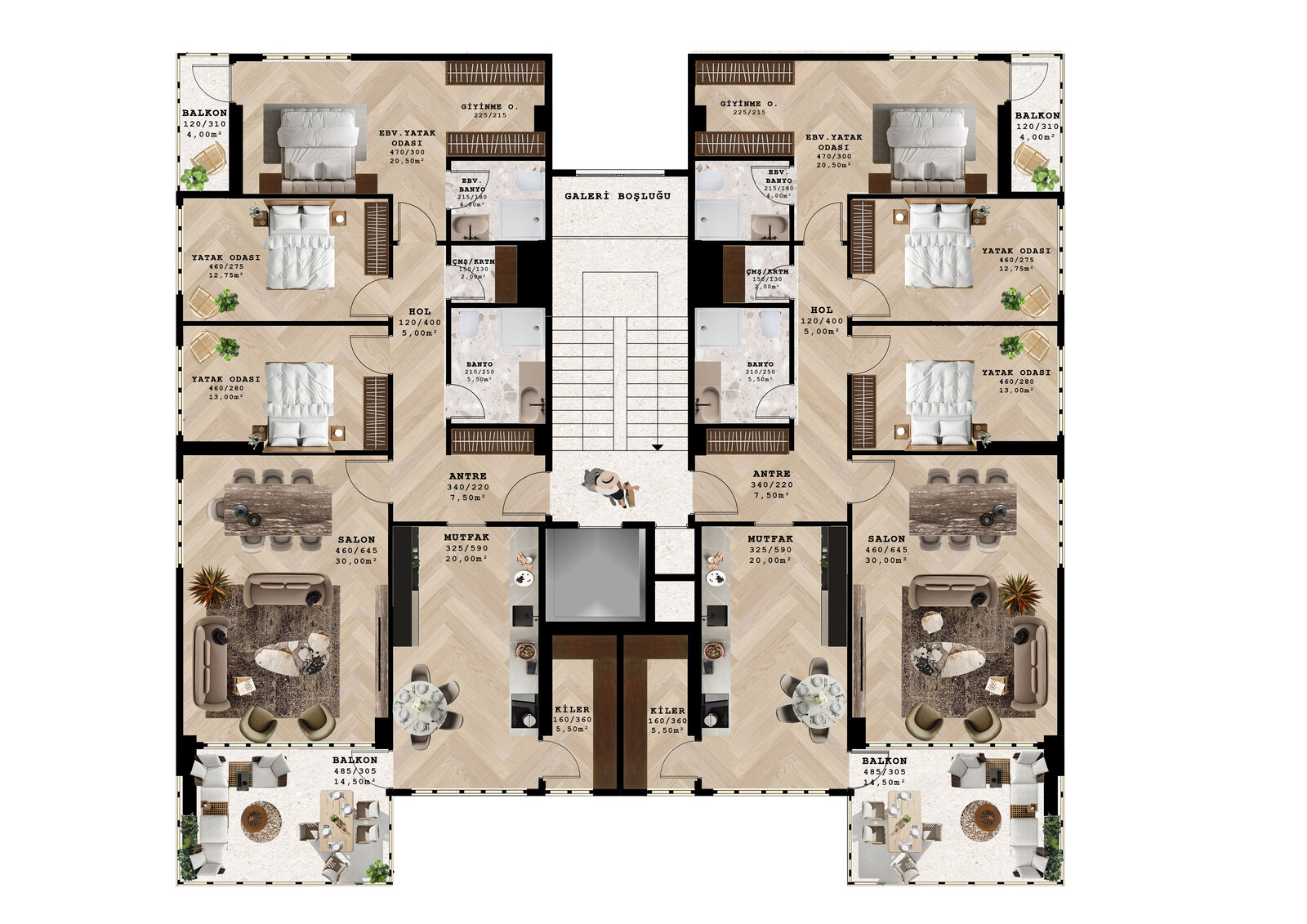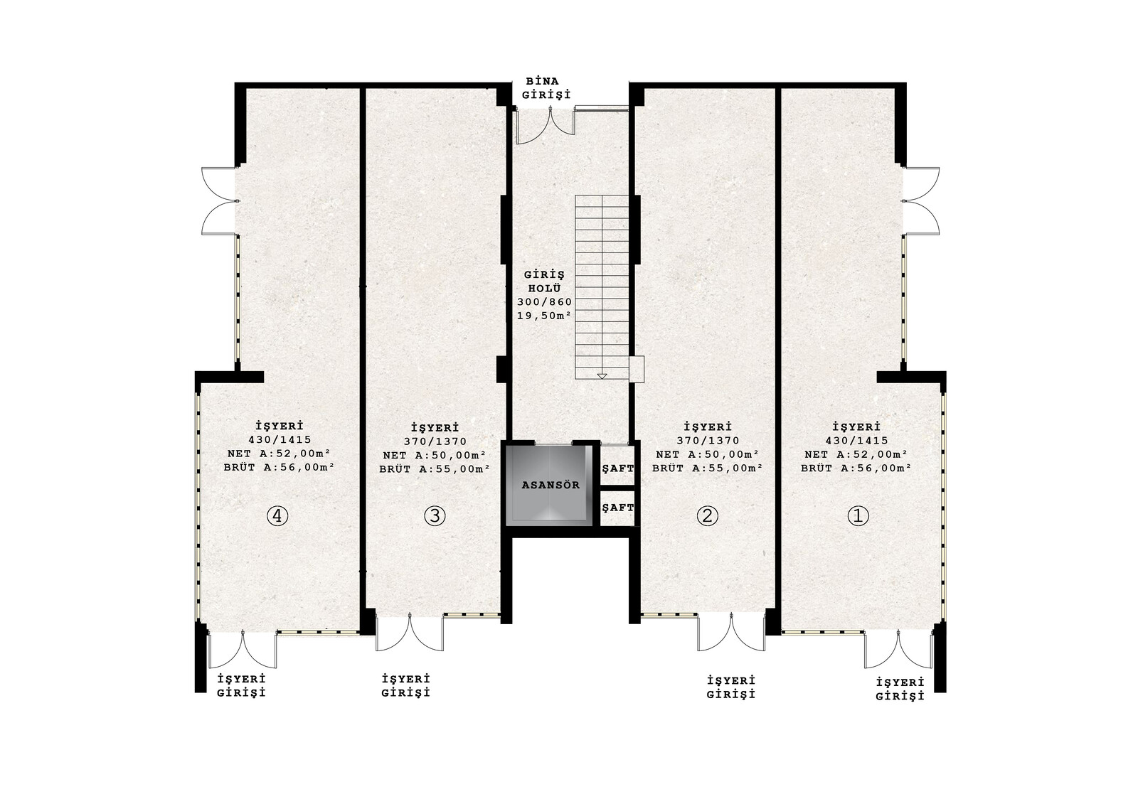 - 8.740 m² alan içinde 10 blokta toplam 60 Adet , 4 Adet işyeri
